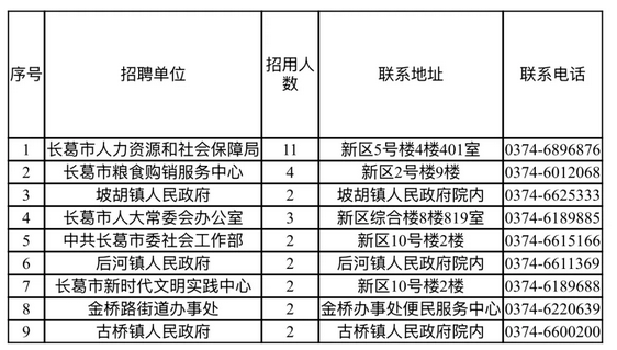 经考察合格的拟聘用人员,在长葛市人社局微信公众号公示7天。无异议的确定聘用人选,各用人单位办理人员聘用手续,进行就业登记。
